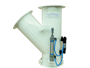VVGrainCare The slide plates are made from 3/16" up to 1/2" thick solid carbon or stainless steel. The corners are radiused in order to prevent the slide plate from binding up when actuating open or closed. The pneumatic cylinder’s clevis is directly attached to the tail end of the slide plate for a compact and economical design.